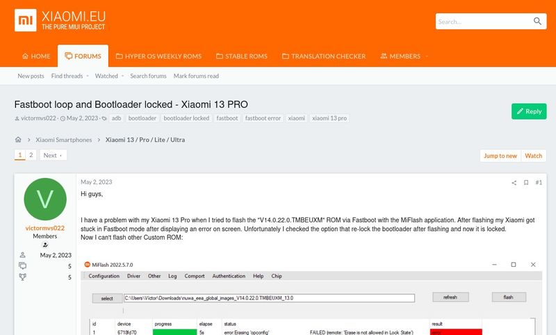 Във форума Xiaomi 13 Ultra XDA вече има публикация от колега с китайски CN телефони, флашнати от продавача с Global ROM и ... със заключен бутлоудър ...