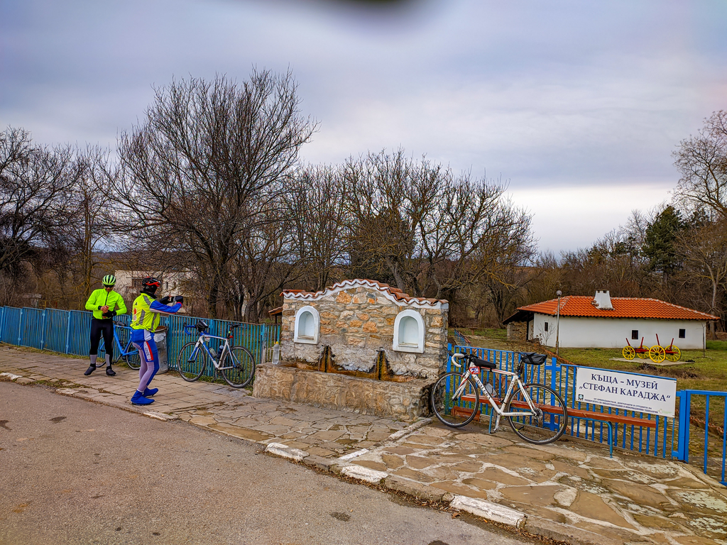 Снимахме се пред паметника на Стефан Караджа и продължихме до чешмата с минерална вода точно пред къщата му.