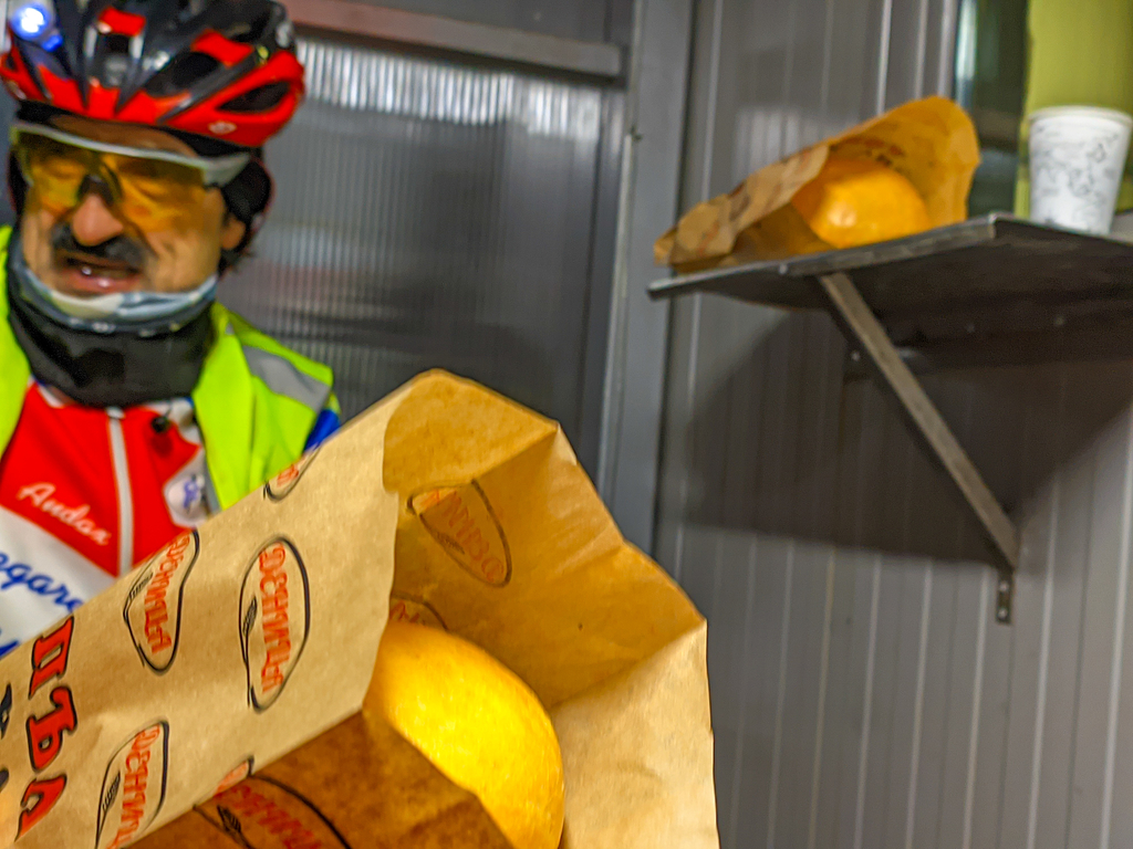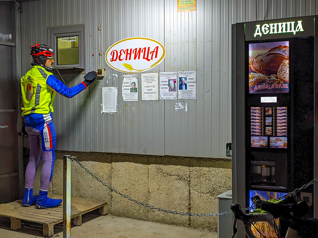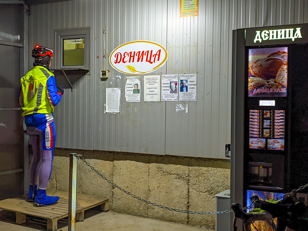 Малко по малко се стъмни, а ето ни нас изкачихме последното баирче 100м денивелация и сме пред хлебозавод Деница в с. Николаево.![]()