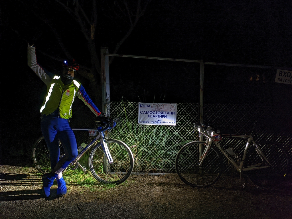 От тогава си спомних следния момент: на връщане вече към Сливен имаше доста от типичния за района силен насрещен вятър. Тогава се връщахме през Ямбол и в Ямбол се покриваха 200 км от бревета. Преди града гледам секретна контрола със снимки и Лазар ни снима. Спрях да си сложа свето-отражателни ленти, че съвсем беше притъмняло и го питам "някак между другото": "Ако завърша в Ямбол, бревета ще ми се зачете ли? ... :)