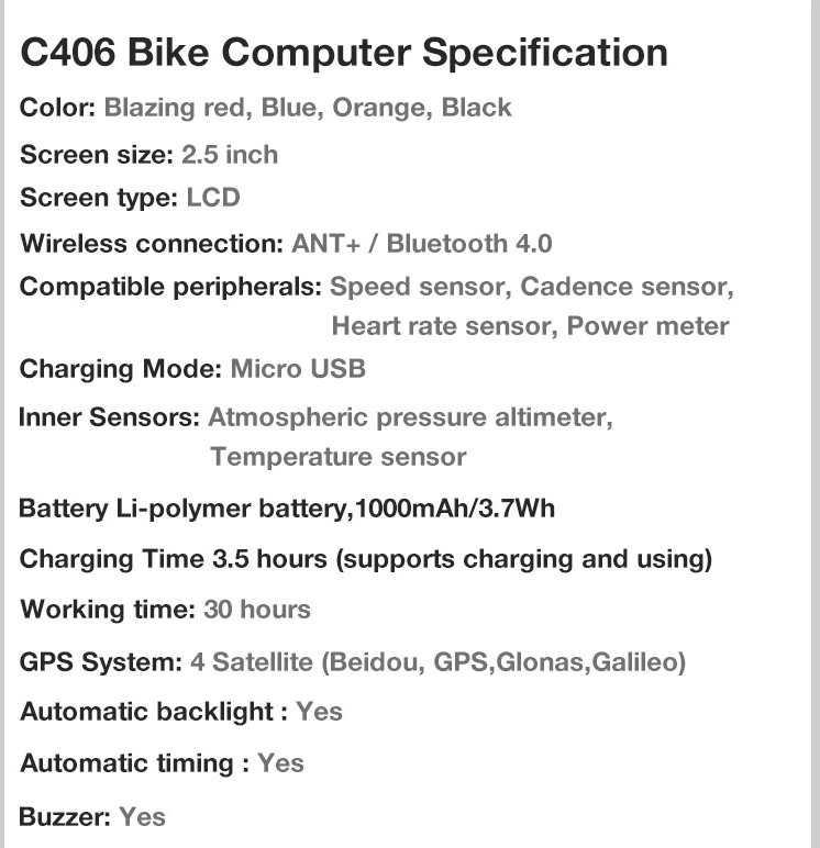 - Подръжка на протоколи за свързване към външни датчици: ANT+ и Bluetooth 4.0magene C406 07