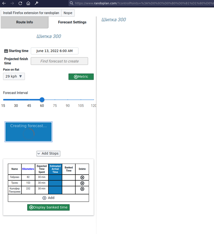 5. най-отдолу в полето Add Stops можете да добавите контролните точки и други места на които планирате да спирате и времето, което смятате да прекарате на всяка контрола.