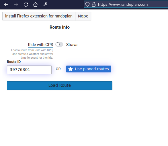 След като се отвори сайта първоначално се зарежда меню, в което трябва да въведете Route ID на GPS трака от RideWithGPS.com.