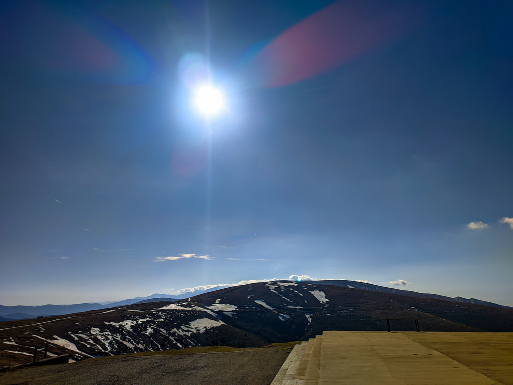 На една стръмна серпентина точно преди върха, обаче асфалта почти е изчезнал и настилката е от твърд плътен чакъл.