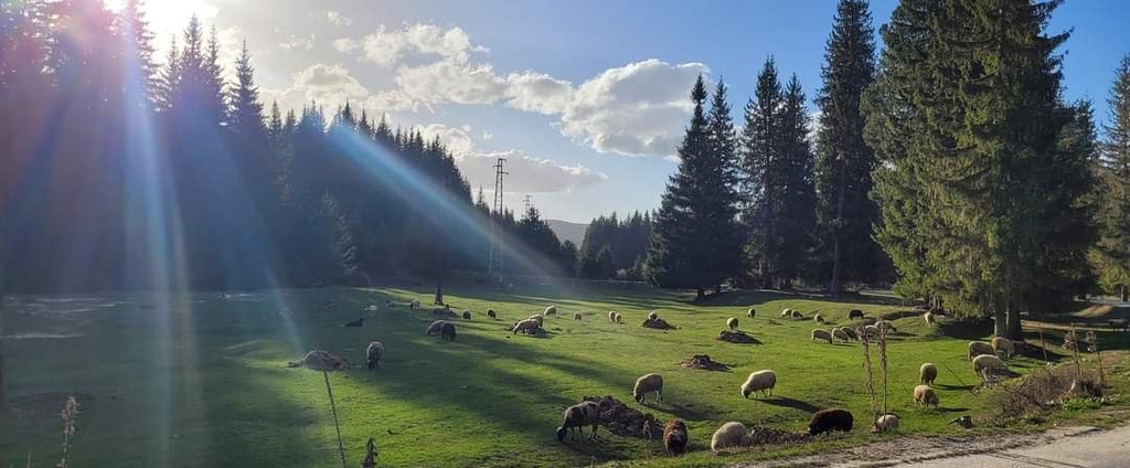 Истинска музика от оркестър горски Феи предназначена за Душата се носеше от десетките звънци на едно най-обикновено стадо овце което кротко си хрупаше зелена трева покрай пътя ...