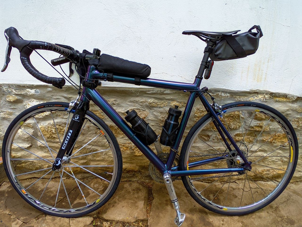 Ние с велосипеда ми Пипс, който от няколко дни е с чисто нови гуми Continental Ultra Sport III с ширина 28 мм се чувствахме супер добре надолу, без абсолютно никакви проблеми.PXL 20220424 150928699
