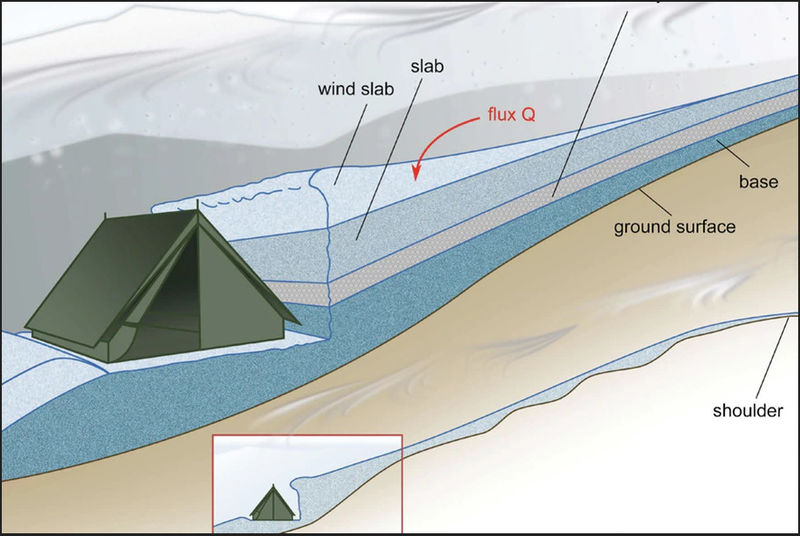 Ако е имало лавина, то иницииращото я събитие се е случило поне девет часа след като на склона е била направена изкопна яма за палатката.![]()