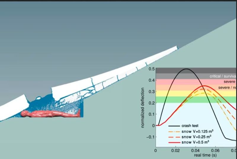 С помощта на компютърно моделиране доказваме, че ударът от снежната плоча може да причини травми, подобни на наблюдаваните.