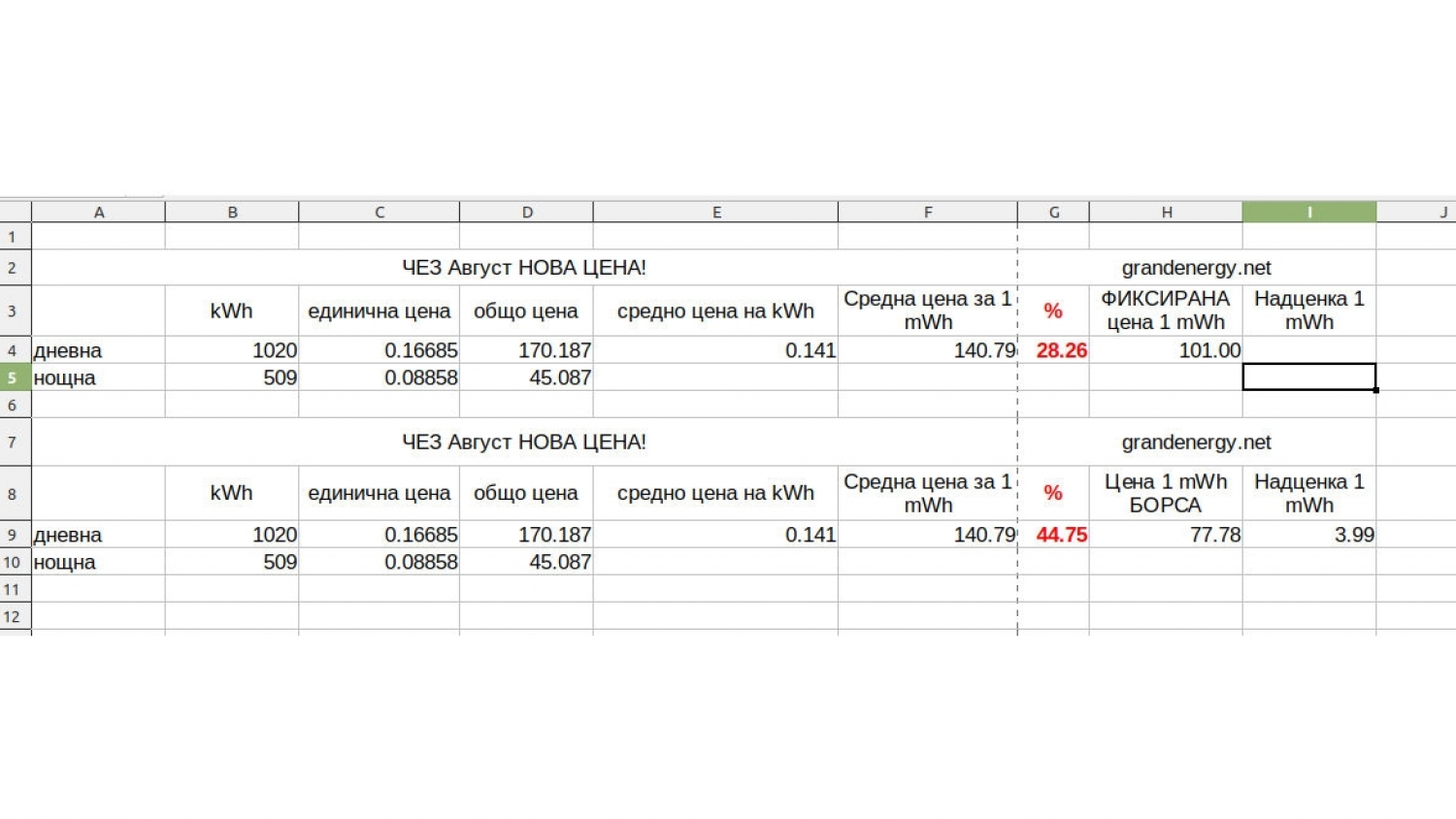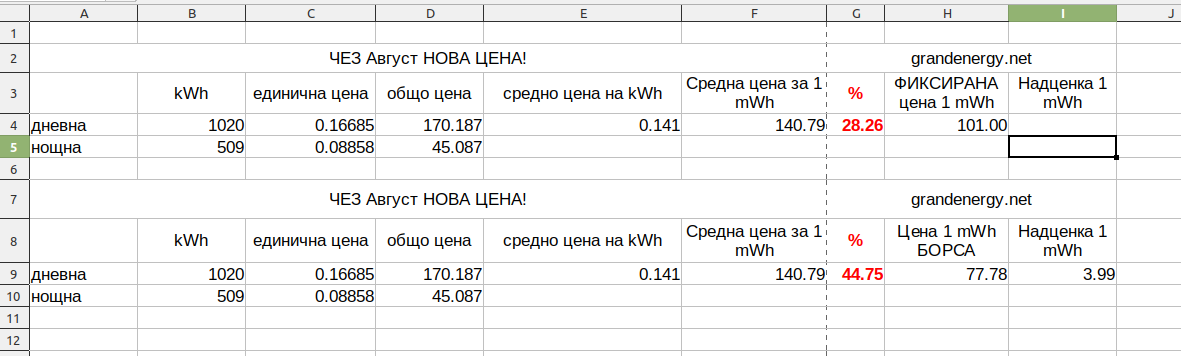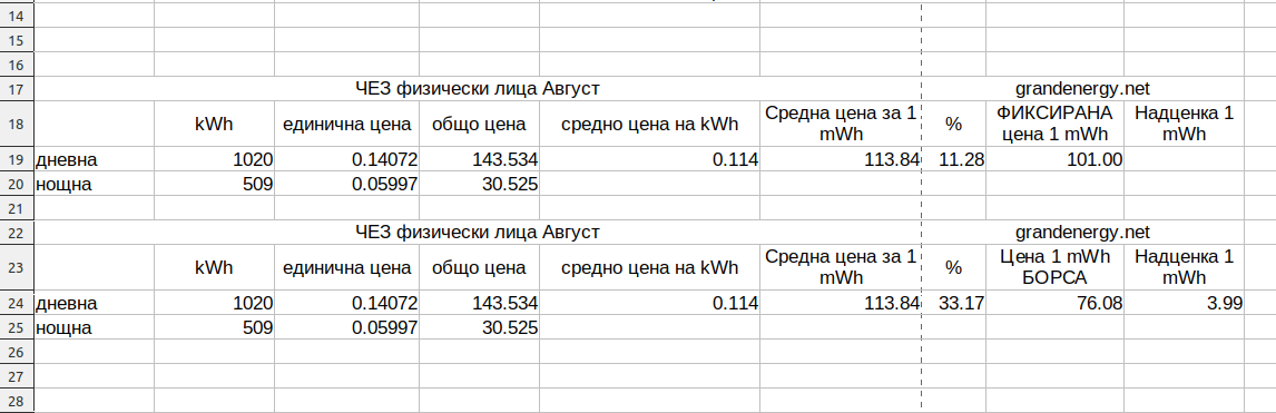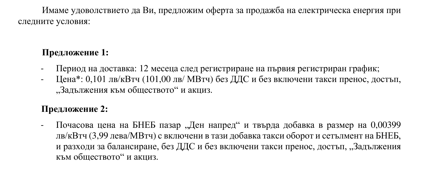 ВАЖНО: В Офертата, която получих НЕ става въпрос за средна цена на ден, а за средна цена на час на борсата!