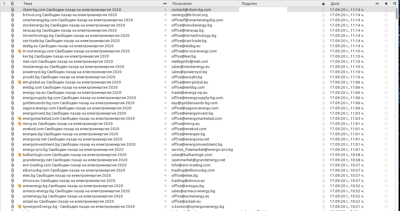 Изпратих персонален имейл с молба за оферта до всеки един доставчик от списъка с крато обяснение къде е фирмата ми и прикачена една зимна фактура и една лятна фактура с потребление.