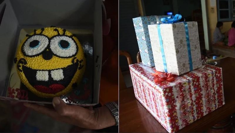В техния дом в селската местност в района на Мае Сай семейството на Пирапат е подготвило няколко големи подаръка, а на масата им светложълта торта с героя Спондж Боб отгоре и.