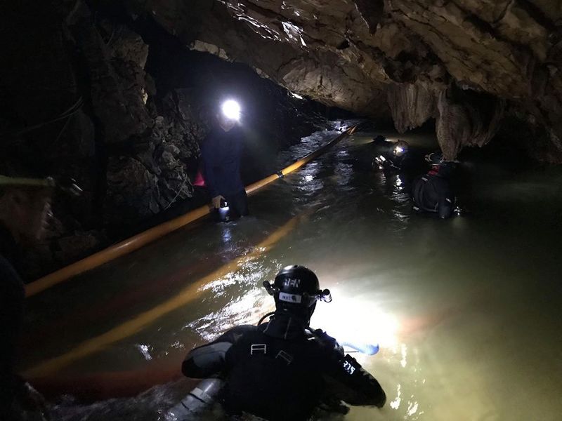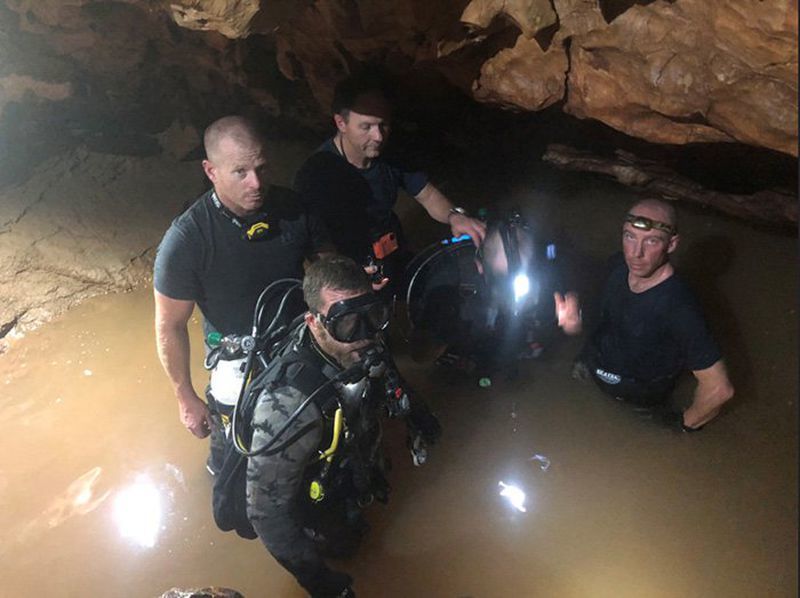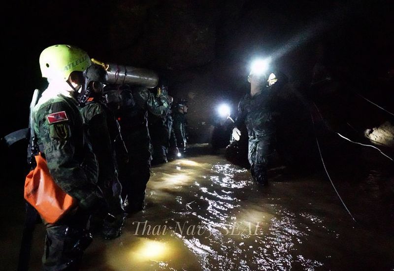 На военните водолази от подразделението "морски тюлени" на тайландския флот първоначално не им се отдава гмуркането вътре в пещерата.