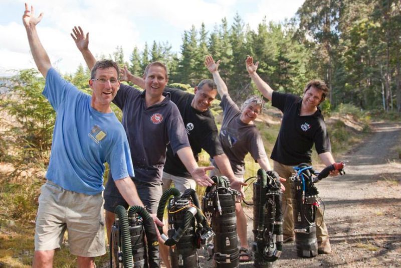 Крис Джуел и Джейсън Малинсън донесоха 500 килограма гмуркаческо оборудване.