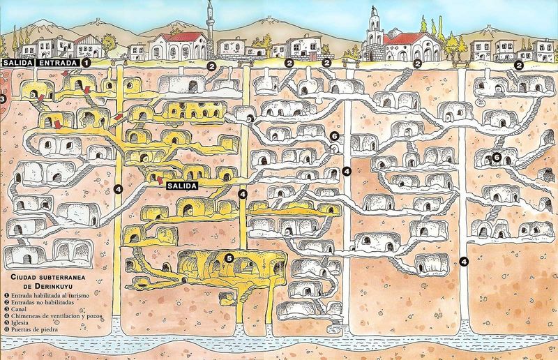 Подземните градове Деринкую, Каймаклъ и Озконак са изградени до осем и повече нива едно под друго.