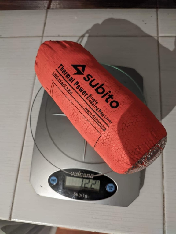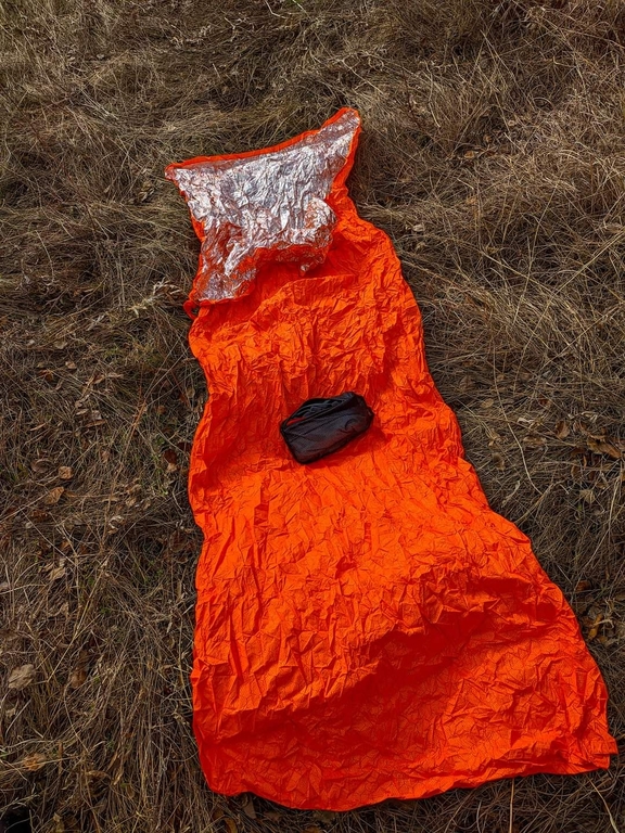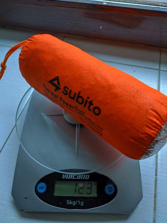 Спалния чувал тежи точно 123 гр, сгъва се изключително компактно, направен е от термо отразяващо фолио от вътре, но е от специална материя и диша, по този начин не ставате вир вода, както се случва при евтините аналози, като ония другите тип плътен найлонов чувал от вътре с отражателно фолио и цена около $4-5.