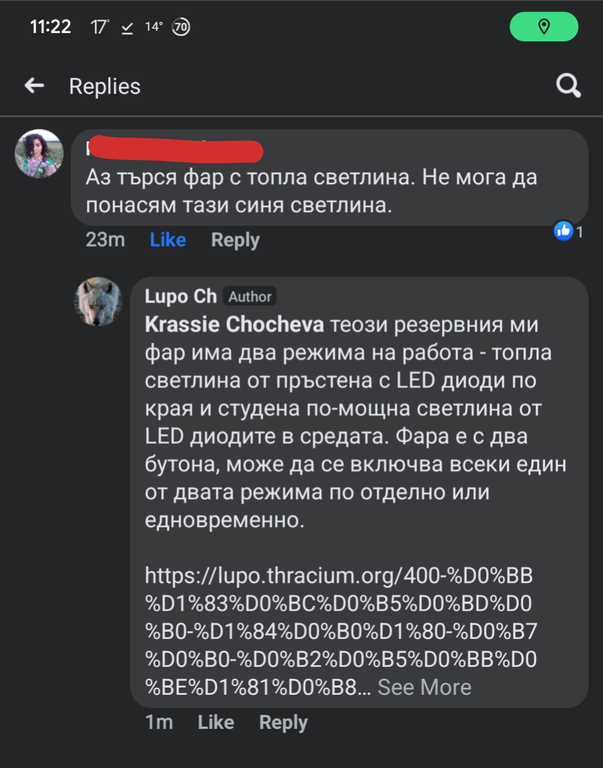 1. Аз търся фар с топла светлина. Не мога даScreenshot 20230513 112254 Facebook 1 понасям тази синя светлина.