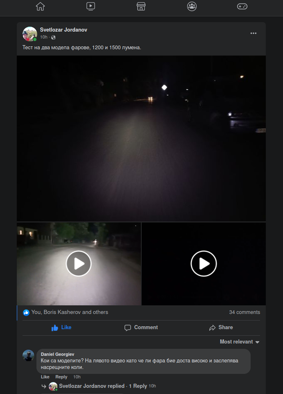 Днес Светляка пък пусна във ФБ ревю на новия му марков фар, който съвсем наскоро си купил на сметка след голямо намаление.