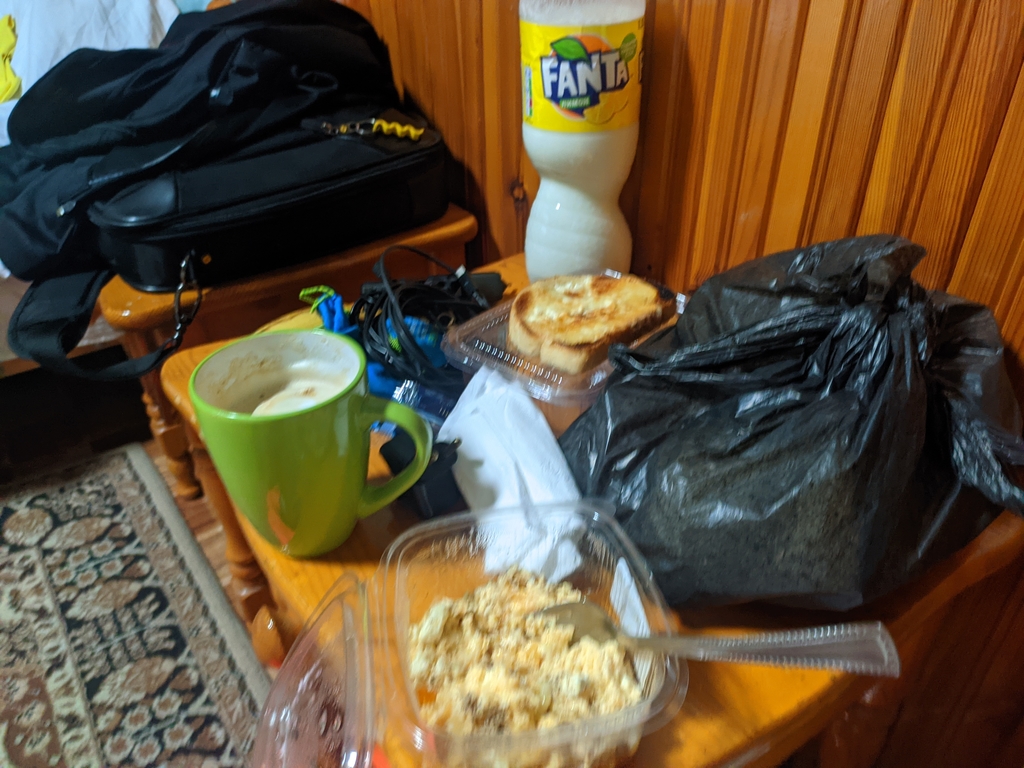 От Дари в ресторанта на Омега си поръчах много вкусни пържени яйца със сирене, два сандвича с кашкавал и бутилка от 1.5 литра с айрян.