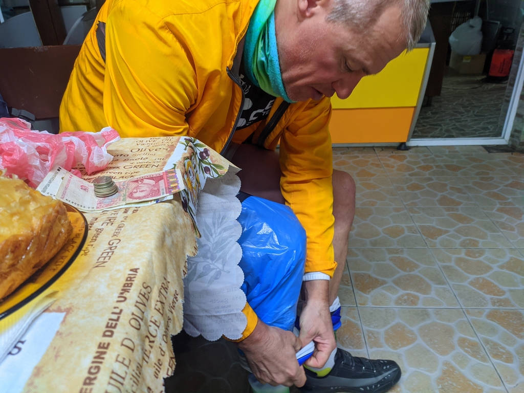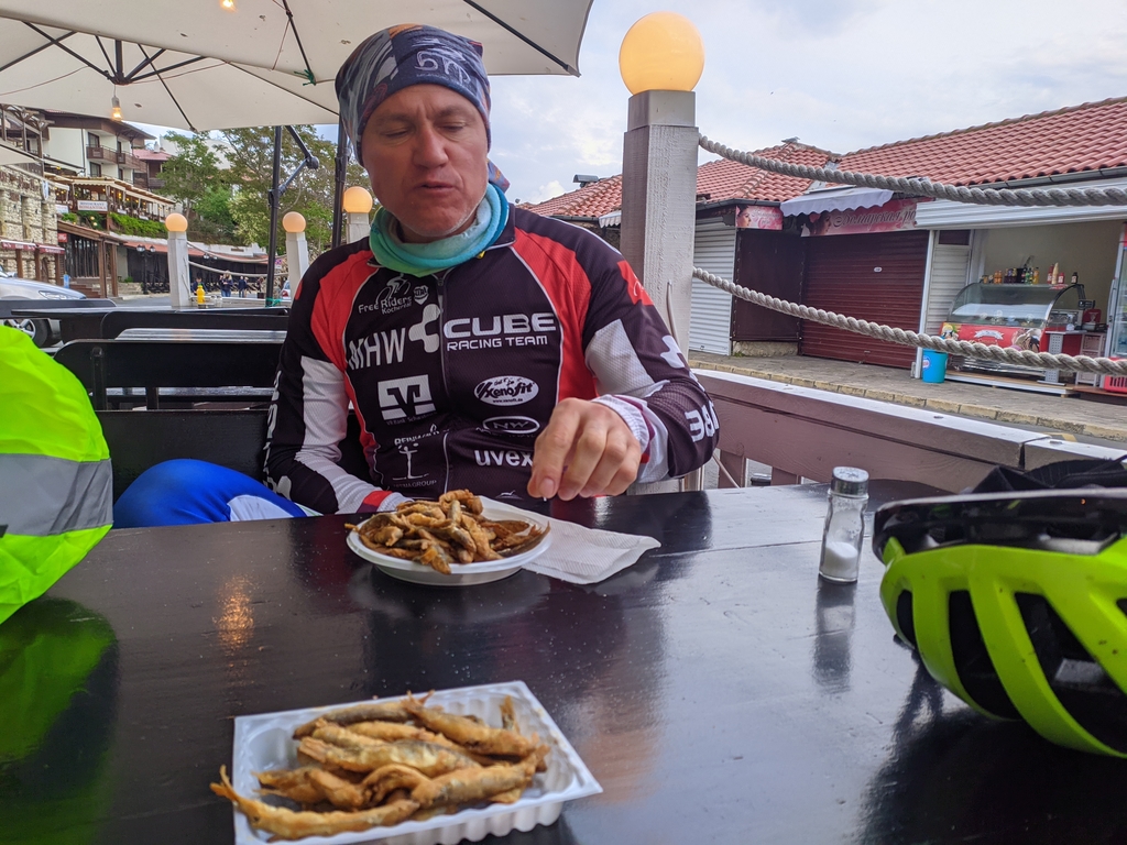 Благодаря на Емо от Бургас за съдействието за веломеханик и вкусните бургаски банички, които ми донесе.