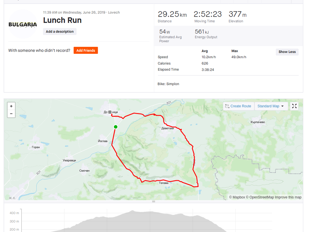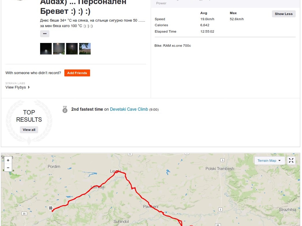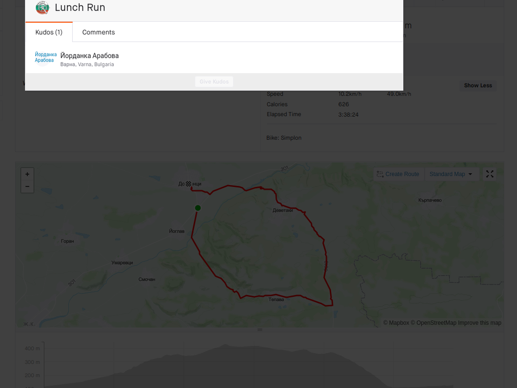 Първия ми запис в Страва има точно един кудос, но забележете от кого ... една от известните жени рандоньори у нас!![]()