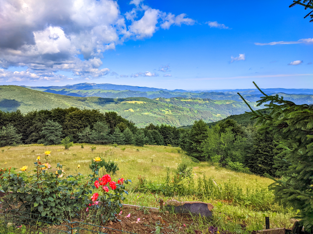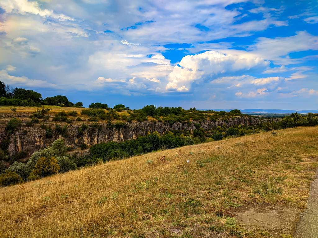 Сред хълмовете и баирчетата в района се откриваха множество спиращи дъха пейзажи, но бях твърде зает да стискам здраво кормилото на Пипс, за да мога да извадя телефона за повече снимки.