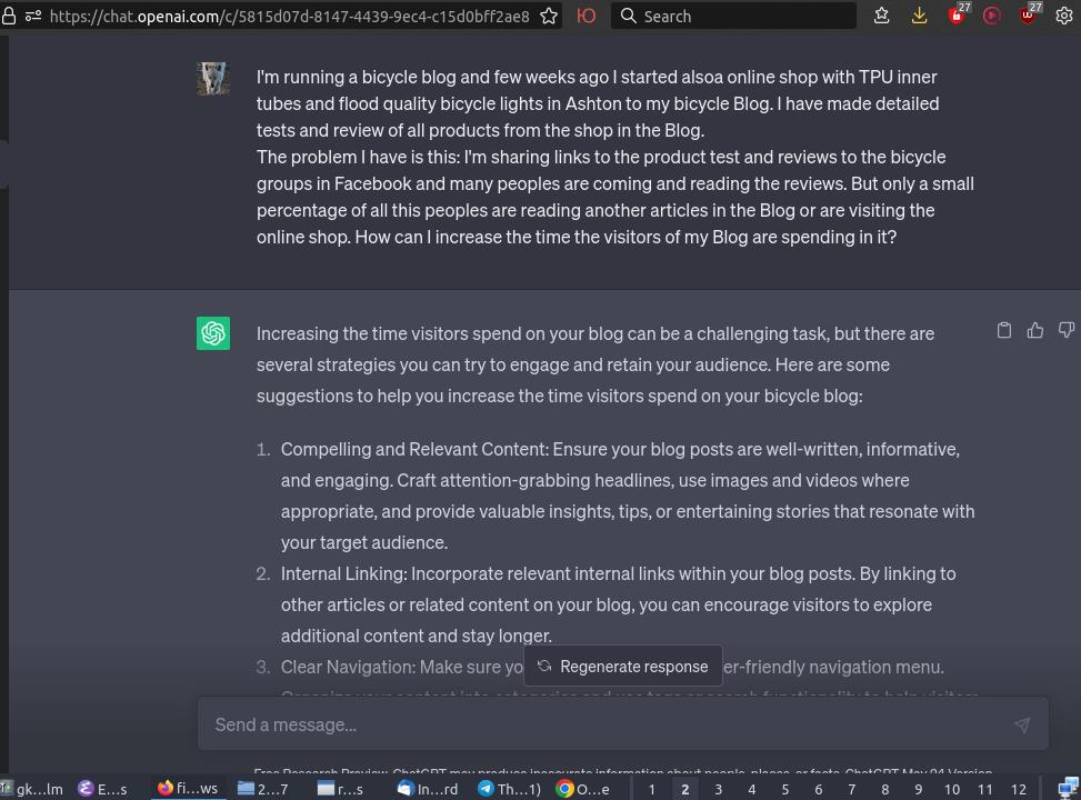 От няколко месеца почти ежедневно използвам Изкуствения интелект ChatGPT.ChatGPT about Engaging Bicycle Blog Visitor 06