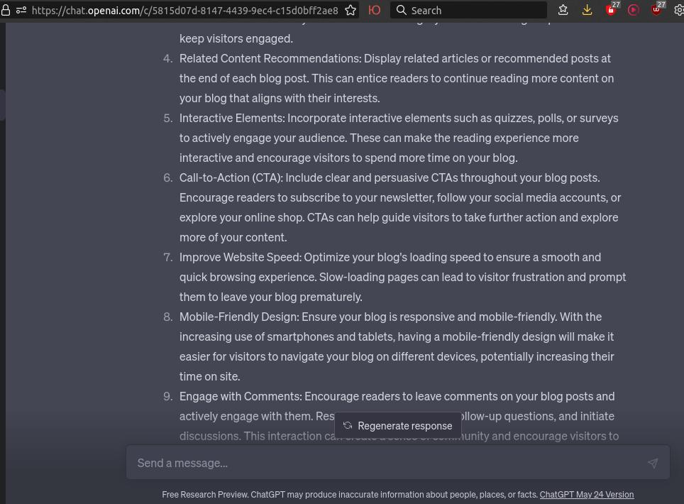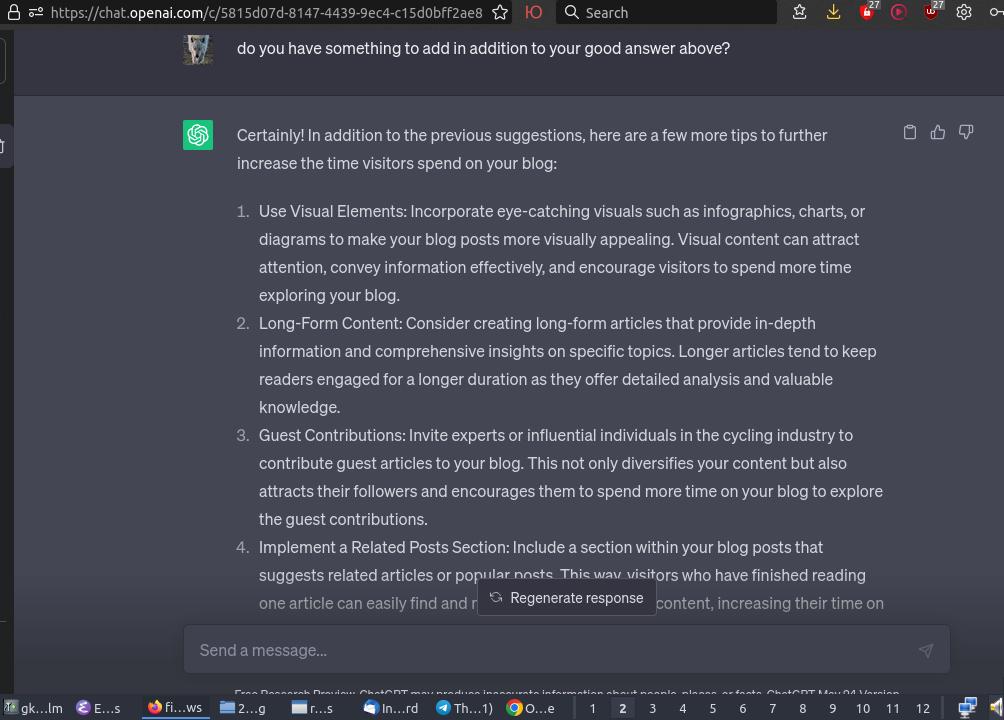 Освен предишните предложения, ето още няколко съвета, които могат да помогнат за увеличаване на времето, което посетителите прекарват във вашия блог:ChatGPT about Engaging Bicycle Blog Visitor 03