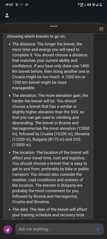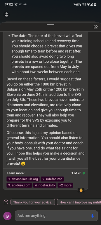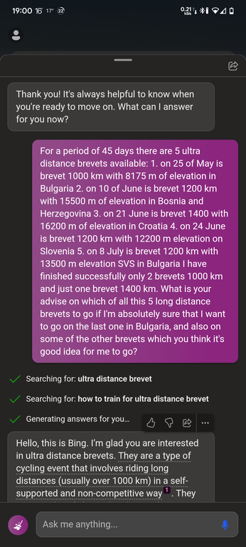 I asked the famous Artificial Intelligence ChatGPT the question below about the upcoming ultra distance LRM 1200 km brevets in this season (the Summer of year 2023).