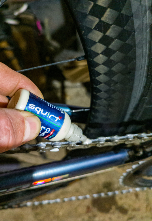 When I'm too lazy to "boil" my chain in paraffin, I quickly lubricate it with the Squirt alternative - a lubricant based on PARAFFIN of course!