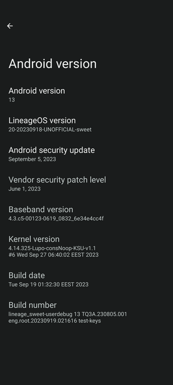 At the moment I have build and I'm using my first custom Android ROM which is based on Lineage OS version 20 with a custom build kernel: Lupo-kernel which I have configured and compiled strongly focused on the super endurance battery life with good overall phone performance.