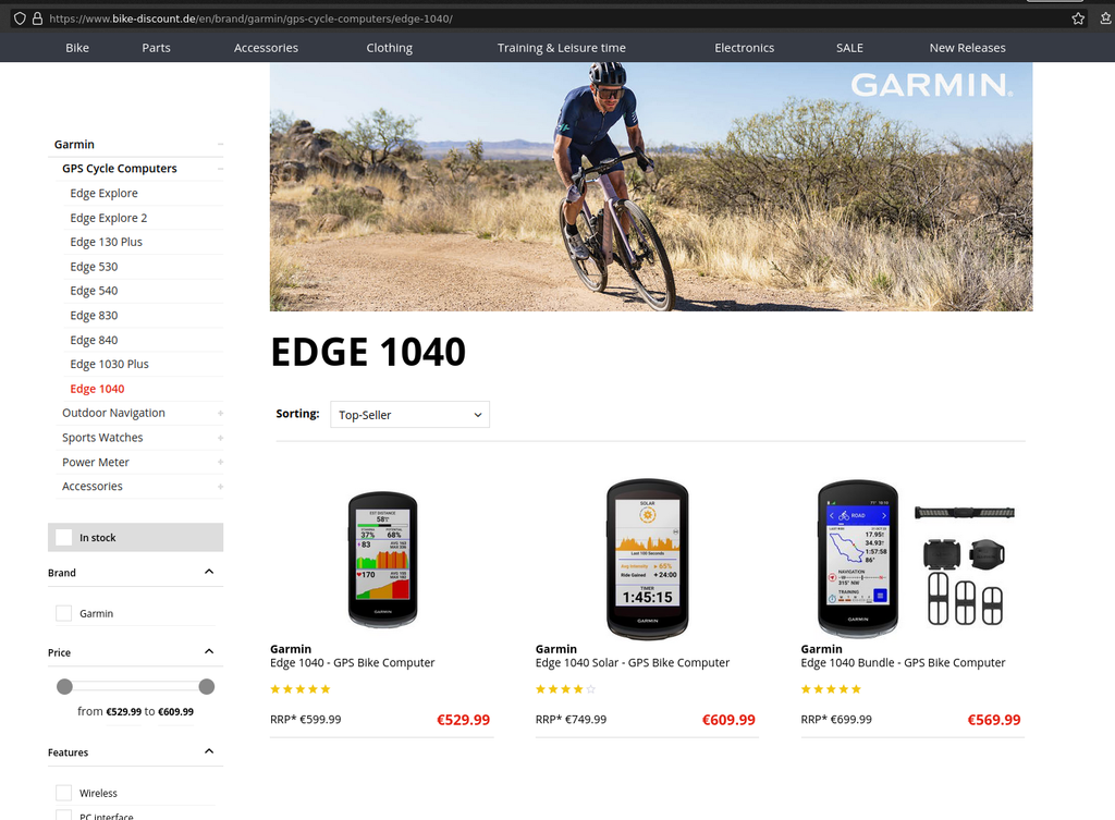 It turns out that on April 22, 2023, the price of Garmin Edge 1040 and 1040 Solar are down by 100-150 euros: