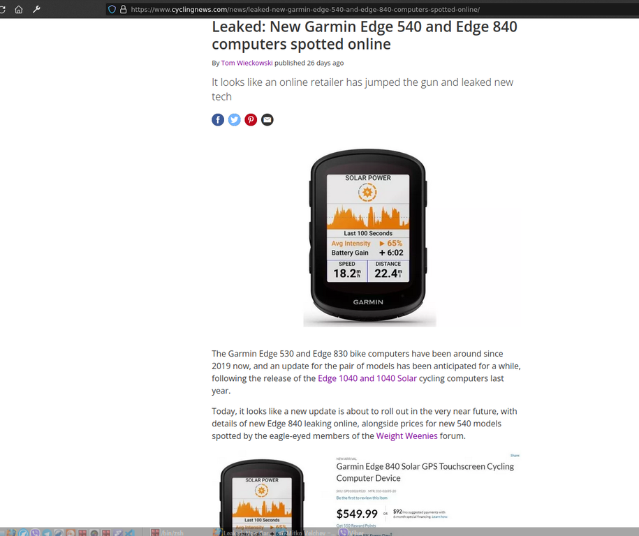 So, on March 28th, I learned that long-awaited information about Garmin Edge 540 and it's Solar version also the Edge 840 and it's Edge 840 Solar version has been leaked on the Internet!![]()