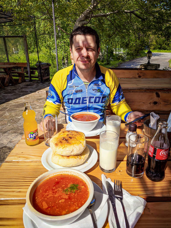 I spent about 45 minutes on that secluded sunny meadow, then I went back on the road and felt that the vibration from behind was unusual and different.