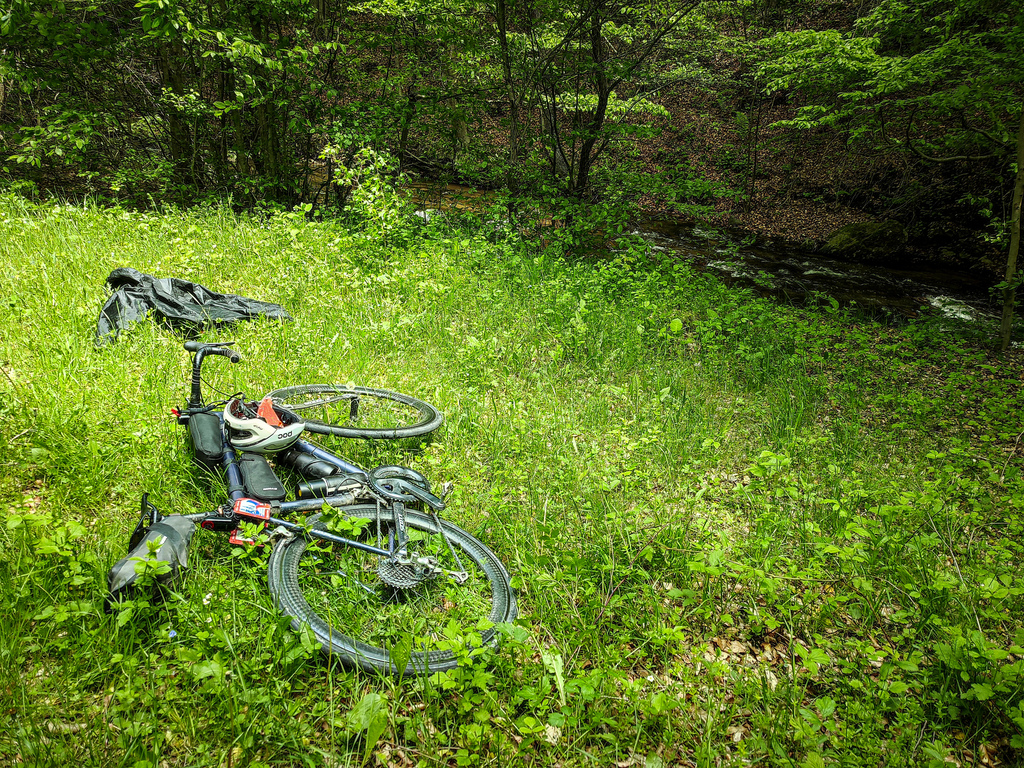 I descended about 2 km further down the road and decided to stop for a snack and a short nap on a sunny meadow next to a clear babbling brook... :)![]()