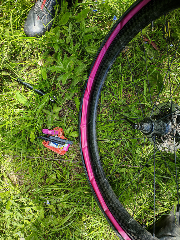 It's definitely not a puncture, like a classic snake bite, because after that ominous impact from behind, I rode several kilometers downhill, plus I sat on the meadow for at least another 45 minutes, and the tire didn't fully deflate, it was just softer than before.