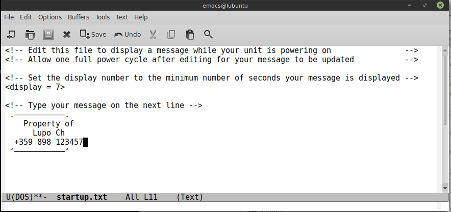 Това е съответно съобщението, което ще се показва при стартиране на устройството.