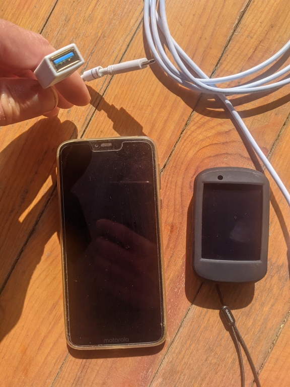 Осъзнах че цялата тази операция мога да я свърша всъщност и през телефона ми посредством OTG кабел, като свържа Гармина с кабел и през OTG адаптера към телефона ми.